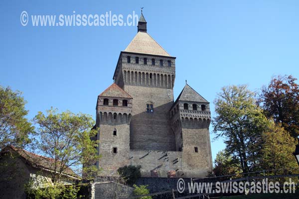 In Vufflens-la-Ville südlich Cossonay scheint es um die Jahrtausendwende beträchtliches hochburgundisches Königsgut gegeben zu haben, das schenkungsweise an das Kloster Romainmôtier gelangt war. Ein lokaladliges Geschlecht, dessen Angehörige für das Kloster als Meier amteten, verwaltete diesen Güterkomplex. Bereits um 1100 teilte sich die Familie. Die eine Linie verblieb bis zu ihrem Erlöschen im 13. Jahrhundert in Ausübung des Meieramtes zu Vufflens-la-Ville, die andere begründete in neugerodetem Land oberhalb Morges eine selbständige Herrschaft mit der Burg Vufflens im Zentrum. Wie diese erste, um 1100 errichtete Anlage ausgesehen hat, wissen wir nicht. Möglicherweise handelte es sich um eine einfache Holz-Erdburg. Die mit den Rodungsarbeiten betrauten Untertanen hausten in einem kleinen Dörfchen zu Füssen der Burg, dem heutigen Vufflens-le-Château. Die mit Peter von Vufflens um die Mitte des 12. Jahrhunderts urkundlich erstmals fassbare Familie hatte Mühe, sich gegen den mächtigen Hochadel der Gegend zu behaupten, der nach der Aufrichtung geschlossener Territorialherrschaften strebte. Guillaume von Vufflens huldigte um 1175 dem Bischof von Lausanne, doch gingen dessen Lehnsrechte im frühen 13. Jahrhundert an die Grafen von Genevois über. Diese belehnten mit der Herrschaft Vufflens die Herren von Cossonay, wodurch die ursprünglichen Inhaber der Burg, die Herren von Vufflens, zu unbedeutenden Untervasallen absanken. Die edelfreien Herren von Cossonay gehörten zu den Parteigängern der Grafen von genevois in deren Auseinandersetzung mit Peter von Savoyen um die Vorherrschaft im Waadtland. Die Cossonay waren jedoch dem Savoyer nicht gewachsen und mussten deren Oberherrschaft anerkennen. Um den Übergang der Herrschaft Vuffelns an Savoyen zu verhindern, bereiteten die Grafen von Genevois eine Heiratsverbindung zwischen dem erlöschenden Hause Vufflens und den Herren von Duin, ihren Anhängern, vor. Tatsächlich fiel auf diese Weise gegen die Mitte des 13. Jahrhunderts Vufflens an die Familie von Duin, doch wechselte nach einiger Zeit die Partei und unterwarf sich Peter II. von Savoyen. Damit ging die Herrschaft Vufflens als Lehen der Duin im Besitz des Hauses Savoyen auf. |