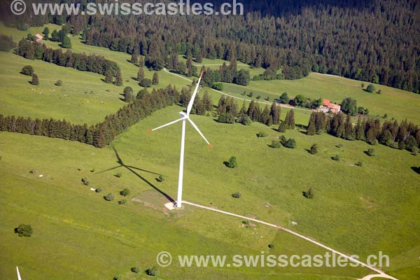 La plus grande centrale éolienne suisse à Mont-Soleil dans le Jura bernois, a produit cette année (2005) plus de 7 millions de kilowattheures, en hausse de 20 %. Ce volume correspond à la consommation moyenne annuelle d'électricité de 2400 foyers.